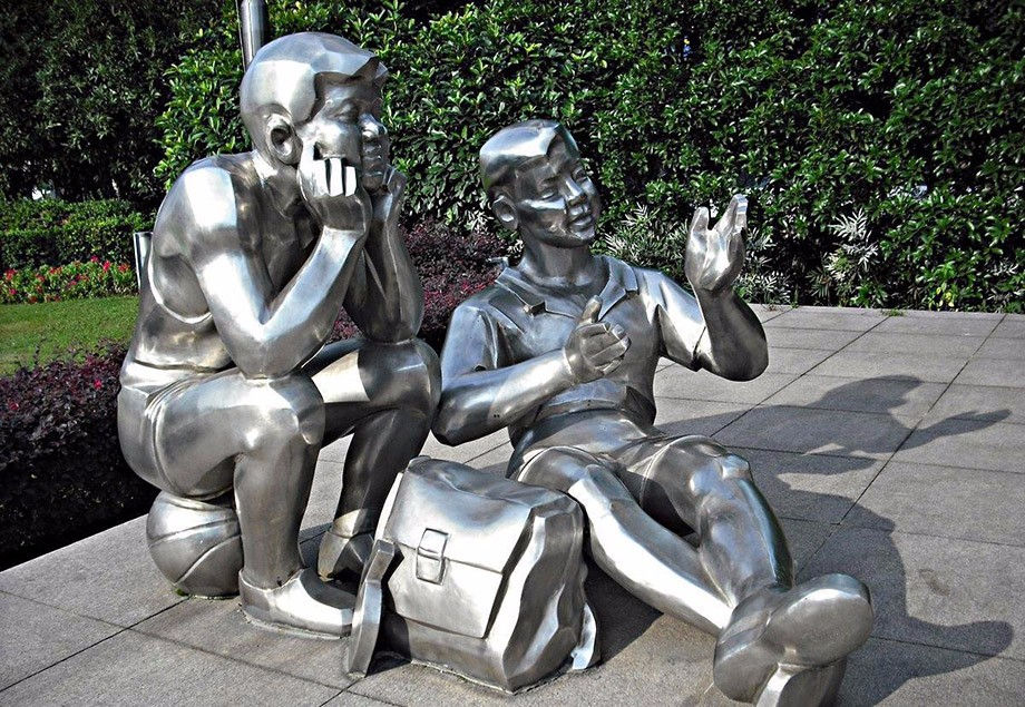 不锈钢雕塑应该有规律的清洁,并且放在干燥的环境里来保护,用手拿时最好带上手套,防止手上汗水里的盐腐蚀。不锈钢雕塑上的污垢如果太重,先用冷风电吹风吹一下。然后用麦杆刷清洁,最后用软毛刷收尾。千万不要用金属抛光剂、水、其他任何溶剂。那样会让铜器掉色。不锈钢雕塑缝隙,我们可以用口水把棉花球弄湿再擦,沿着裂缝从头擦到尾,以免遗漏。一年一次,给铜器薄薄地上层微晶蜡,就是那种无色蜡。