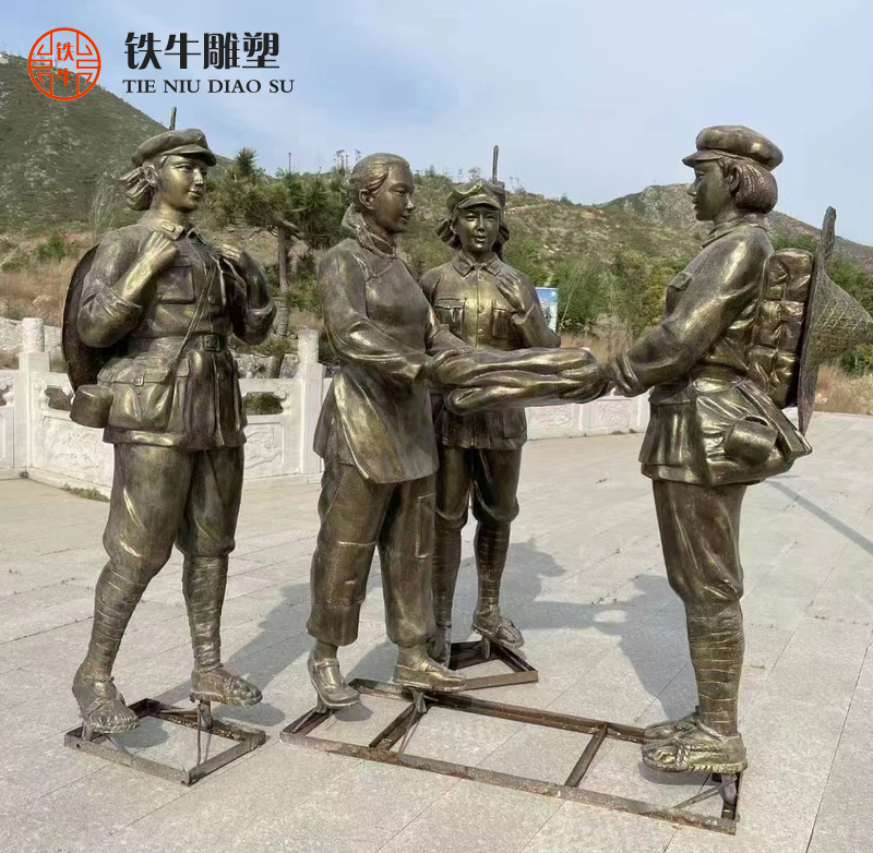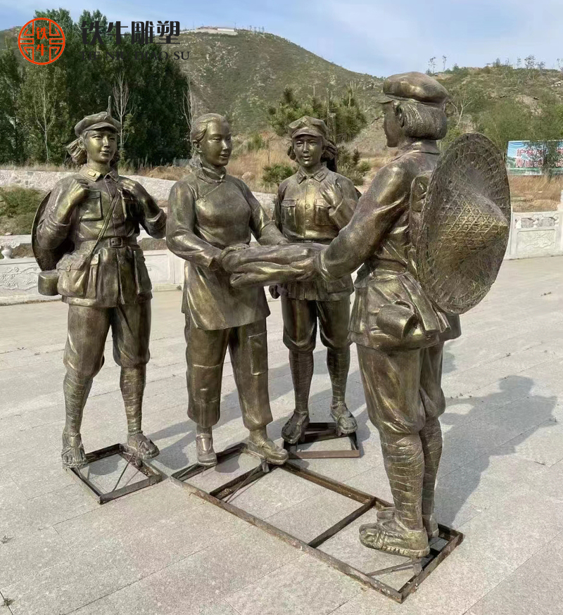 在很多公共场合我们可以看到一些玻璃钢仿铜雕塑,也就是铸铜雕塑,这些雕塑眼观可以给人一种铜的真实感,但是用手去触摸的时候却不是真实的铸铜雕塑。这是因为材质和加工条件的制约,许多作品无法用真实的材料来制作,所以人们往往选择玻璃钢材质来制作玻璃钢仿铜雕塑,这种材质制作出来的仿铜雕塑性价比高,色彩和质感也很强烈。